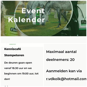 Tijdens het Kennis café praten we je onder andere bij over de kracht van gemixt ruwvoer op de gezondheid van jouw paard. We vertellen je alles over ons voerconcept, veel voorkomende voedingsproblemen en de werking van het spijsverteringskanaal. Een interactieve avond met ruimte voor al jou vragen.