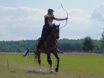 Afgelopen week ging ik met acht van mijn studenten naar Polen. Zij konden daar drie dagen trainen met een goede Poolse trainer, op zijn terrein en met zijn goed getrainde paarden. Daarna reden we een wedstrijd Horseback Archery Eventing van drie dagen. De jongste student die meeging was Jens, 10 jaar. Ook hij deed het fantastisch met pony Narys! En ik won de wedstrijd met Ballentine, een Quarter horse net als mijn eigen paard! Ik was erg blij dat ik op de HUNT track met een omloop van 750 meter en 17 doelen in beide runs geen enkel doel miste! Ik heb ook een video van mijn laatste run op de Raid toegevoegd, 5 doelen, 150 meter, 11.9 seconden, alle doelen raak!