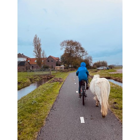 Bedankt voor je lieve reactie. Ik heb weleens met Luna gefietst, maar aangezien de stal waar ze nu staat te ver weg is voor de fiets heb ik nooit een fiets op stal waarmee ik met haar kan gaan fietsen😅