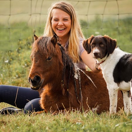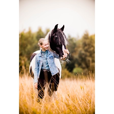 Super leuk om te zien, wat zijn jullie samen gegroeid! Wij hebben bij mijn ouders thuis ook een minipaardje en samen een buitenrit maken (ik op mn pony en mn moeder met de mini voor de sulky) was echt fantastisch. En ook hij kon veel kunstjes. Ik wens je heel veel plezier en succes nog, en lekker genieten samen maar dat komt zo te zien vast goed!
