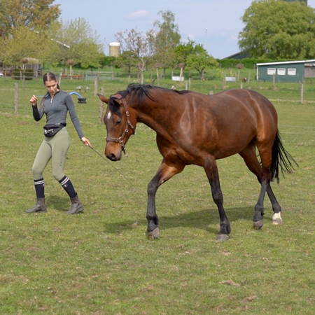 Vanaf dat hij bij ons kwam zijn we stapje voor stapje gaan trainen. Zonder druk of haast. Eerst maar eens elkaar vinden en vertrouwen opbouwen. Milow doet graag alles perfect en is heel introvert. Niet over zijn grens heen gaan is dan ook de uitdaging. Maar met veel geduld hebben we al ontzettend mooie stappen kunnen zetten, zoals je in de video ook kan zien. Nu het vertrouwen tussen ons klopt, kunnen we alles aan! Omdat ik ook moeder ben heb ik niet alle tijd van de wereld. Soms moet ik het doen met 1 a 2 trainingen in de week, of alleen een wandeling. Maar dat vind ik helemaal niet erg. Ik hoop echt dat Milow nog 20+ jaar bij ons is! Ik gebruik trouwens niet een specifieke techniek, maar een combinatie van verschillende technieken met mijn eigen draai eraan. Voorbeelden van inspiratie bronnen zijn: Romy Huisman, FeatherlightHorsemanship, Parelli, andere Instagramers, noem maar op. Een combinatie van R+ en R-, met gevoel als basis.