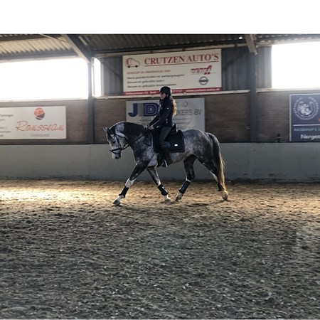 Hier zien jullie maar een fractie van wat Iago en ik oefenen. Zo spelen we veem met zijgangen en ook trainen we rustig door in het dressuur. Wij hebben de afgelopen jaren heel veel op rust en harmonie gewerkt, Iago is namelijk heel enthousiast en raakt hierdoor weleens de kluts kwijt. Ik denk dat we de rust goed erin hebben gekregen en hier ben ik heel trots op. Momenteel ben ik met de opleiding tot Klassieke rijinstructrice en revalidatie therapeute bij EquusUniversalis. Hier leer ik enorm veel van en neem ik de tools elke training mee.